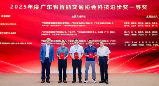 我院与中山大学、广东省道路运输事务中心、车城网(广州)智能科技有限公司、北京嘀嘀无限科技发展有限公司合作研发的《面向主动安全的车-路-云协同管控关键技术及应用》项目,凭借在智能交通领域的突出创新性与实践价值,成功获评“2025年度广东省智能交通协会科技进步奖一等奖”。我院智能交通所所长陈海伟应邀出席大会,并代表合作团队参与颁奖典礼。