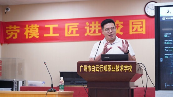 为深入贯彻落实劳模工匠校园宣讲阵地建设要求,充分发挥劳模工匠在职业教育中的榜样引领与实践指导作用,践行国企社会责任,弘扬 “精益求精、追求卓越” 的工匠精神,切实发挥科研机构在技术普及与人才培育中的引领作用,2025年9月29日,广州市交通规划研究院有限公司(以下简称“广交研”)智能交通所所长陈海伟,受邀走进广州市白云行知职业技术学校,开展“劳模工匠进校园”主题宣讲活动。活动中,陈海伟所长以“数智赋能城市交通精细化治理的实践与思考”为题作专题讲座,为师生搭建起“科研实践与职业教育”的桥梁,助力职教学子深化对智能交通领域的认知,树立专业发展方向,推动“劳模工匠进校园”活动在职业教育领域落地见效。