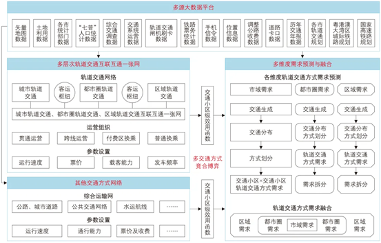 论文摘要:轨道交通多网融合发展趋势要求融合多层次设施和多维度需求,建立轨道交通一体化客运模型。在分析既有轨道交通客运模型面临挑战的基础上,提出轨道交通一体化客运模型架构,研究模型关键技术。通过多层次轨道交通设施融合技术、多维度轨道交通需求融合技术和轨道交通多方式竞合博弈技术,搭建轨道交通互联互通一张网,得到精细化的轨道交通方式需求,并模拟了轨道交通与其他交通方式的竞争与合作。以粤港澳大湾区为例构建轨道交通一体化客运模型,该模型解决了4种轨道交通互联互通模式建模问题,利用枢纽客流溯源技术详细模拟了其他交通方式与轨道交通接驳出行链,实现了轨道交通出行全流程追溯,能够为轨道交通需求分析、融合方案比选、方案评估等提供定量化数据支撑。