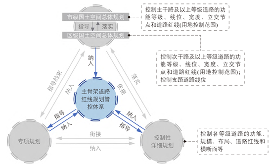 广州市主骨架道路红线规划管控体系传导机制示意